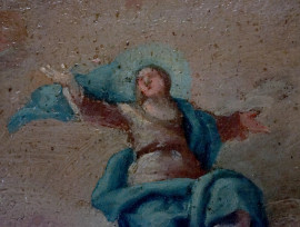 Pittore del XVIII secolo, Assunzione della Vergine, olio su tela, cm 48x62,5, entro cornice, (difetti e restauri sulla tela).