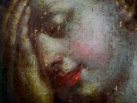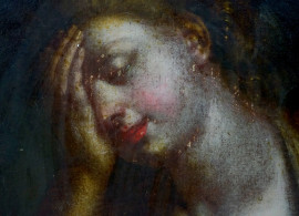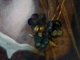 Pittore del XVIII secolo, Fanciulla che piange il suo uccellino, olio su tela, cm 61x50