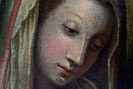 Pittore del XVIII secolo,Vergine, olio su tela, cm 28,5x22, entro cornice