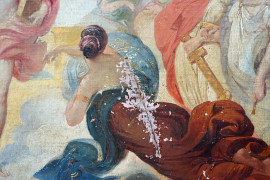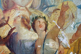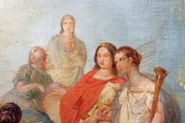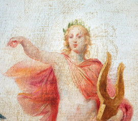 Pittore del XX secolo, Apollo e le Muse, olio su tela, cm 41x59, (difetti).