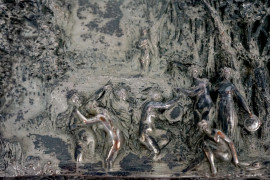 Placca in argento sbalzato raffigurante il bagno di Diana e le ninfe, cm 7,5x13, XIX secolo, (difetti).