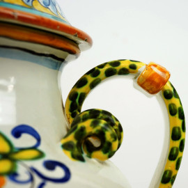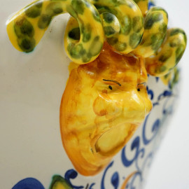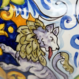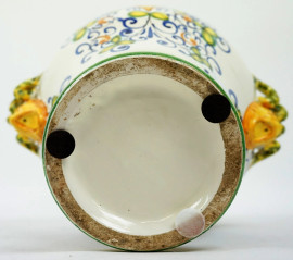 a smalti policromi, con decoro centrale raffigurante lo stemma mediceo, anse a serpentelli, cm h 40, (lievi difetti)