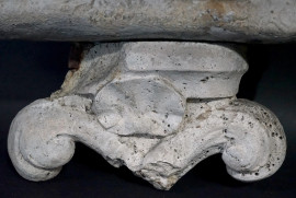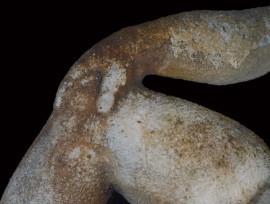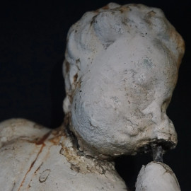 Putto sdraiato con clessidra, antica scultura in marmo, cm 43x37x15, (difetti e mancanze, marmo dipinto)