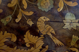 Ribalta olandese riccamente intarsiata in vari legni pregiati, fine XIX secolo