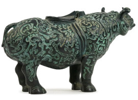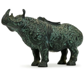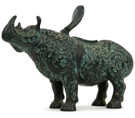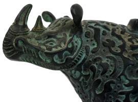 Rinoceronte, scultura in bronzo, cm h 17x28, Cina, XX secolo, (lievi difetti).