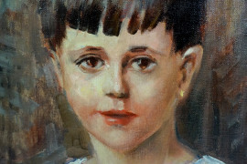 Ritratto di bambina, olio su tela, cm 46x36, firmato in alto a destra, entro cornice.