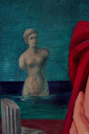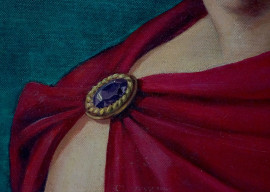 Ritratto d'uomo con manto rosso, olio su tela, cm 80x60, firmato, (restauri)