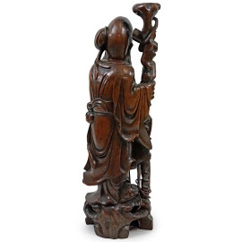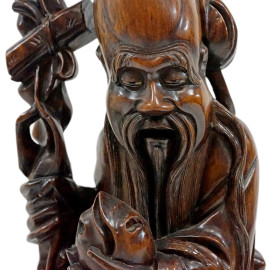 Saggio, scultura in legno scolpito, arte orientale, XX secolo, cm h 66