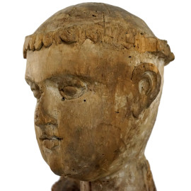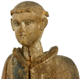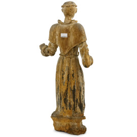 San Francesco, scultura in legno con tracce di policromia, XVII secolo, cm h 116, (difetti e mancanze)