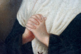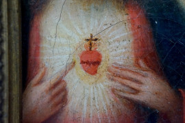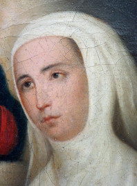 Santa con il Sacro cuore di Gesù, olio su tela, cm 20x15, XIX secolo, entro cornice.