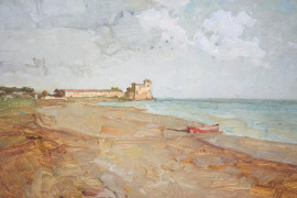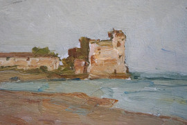 Santa Severa, olio su tavoletta, cm 24,5x33,5, XX secolo.