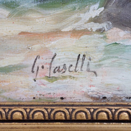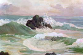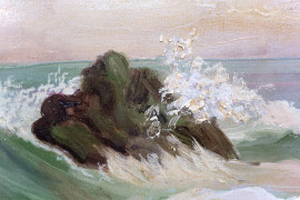 Scogli, olio su tela riportata su cartone, cm 42x52, firmato, entro cornice, (lievi difetti).