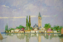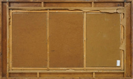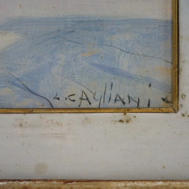 Scorci di paesaggi italiani, tre dipinti ad olio su masonite, cadauno cm 54,5x34,5 firmati Luigi Cagliani, entro un'unica cornice.