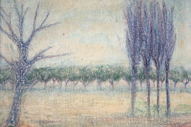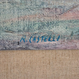 Scorcio di paesaggio innevato, olio su tela, cm 25x31, firmato, entro cornice