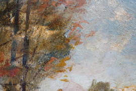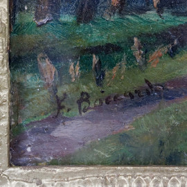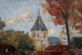 Scorcio di paese, olio su cartone, cm 24x30, firmato, entro cornice.