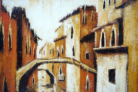 Scorcio di Venezia, olio su tela, cm 60,5x80, firmato, entro cornice
