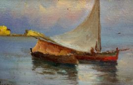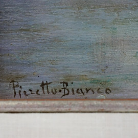 Scorcio lagunare, olio su tavoletta, cm 9x15, firmato, entro cornice.
