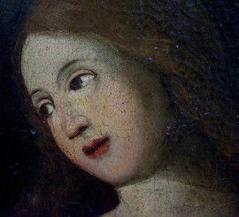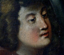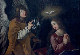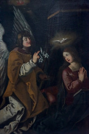 Scuola italiana del XVII secolo, Annunciazione, olio su tela, cm 95x76, entro antica cornice, (restauri)