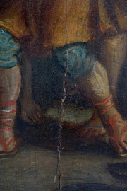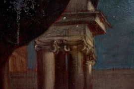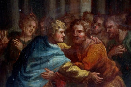 Scuola romana, Scena biblica, olio su tavola, cm 20x30, entro cornice, (difetti sulla tela).