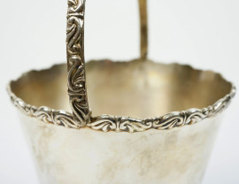 Secchiello porta ghiaccio in argento, Egitto, XX secolo, corpo liscio, manico e bordi cesellati, peso gr. 723