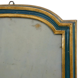 Specchiera di linea sagomata in legno dorato e laccato blu, XIX secolo, ingombro tot. cm 81x53,5, (difetti).