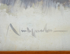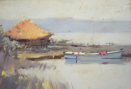 Paesaggio lagunare, olio su tavola, cm 20x20, entro cornice