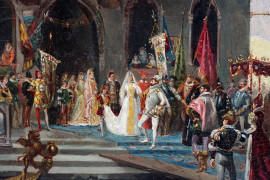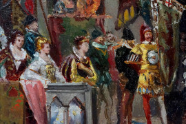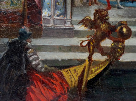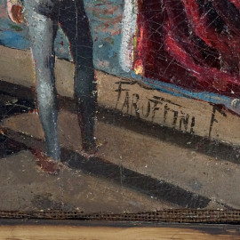 Sposalizio a Venezia, olio su carta applicata su tela, cm 26,5x39,5, firmato Faruffini, entro cornice.