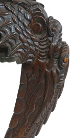 fascia e gambe scolpite a decoro di teste di drago, piedini a ricciolo, cm h 70x34x34,(difetti).