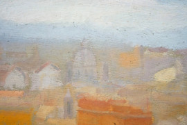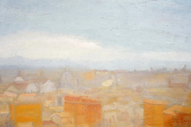 Tetti di Roma, olio su cartone, cm 36x50, firmato, entro cornice.