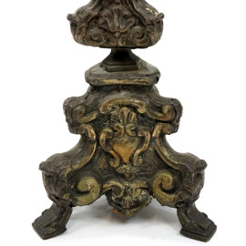 Torciere in lamina di metallo inciso e sbalzato, XIX secolo, cm h 92, (difetti).