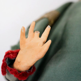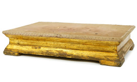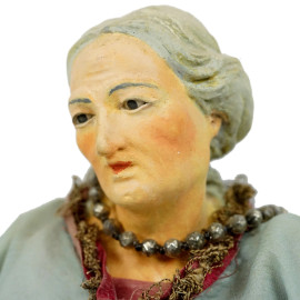 Tre sculture da presepe, Napoli, XX secolo, alt max cm 40, con base in legno dorato, (difetti)