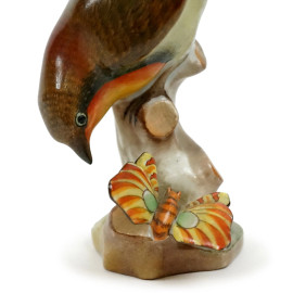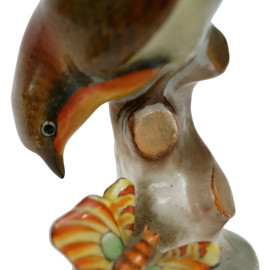 Tre uccellini in porcellana policroma e dorata, manifatture diverse, XX secolo, alt. max cm 12, (difetti)