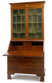 parte superiore a due ante a vetri, parte inferiore con sportello a ribalta e tre cassetti sottostanti, cm h 200x96,5x48, (difetti).