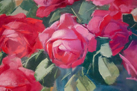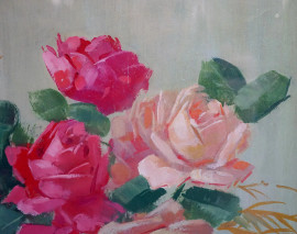 Vaso con rose, olio su cartone, cm 53x68, firmato in alto a destra, entro cornice.