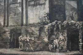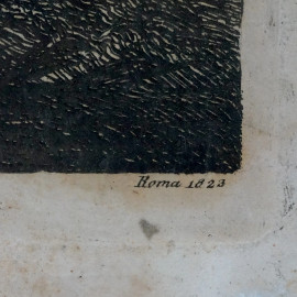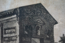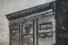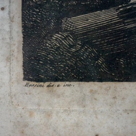 Veduta del tempio delle Camene, incisione, cm 50x66,5, Rossini dis. e inc., Roma 1823, entro cornice, (difetti)