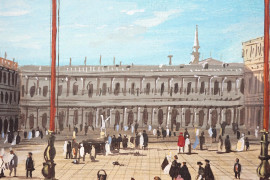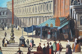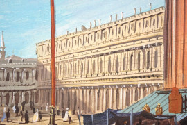 Veduta di Piazza San Marco, tempera su carta riportata su tela, cm 24x33, fine XIX secolo