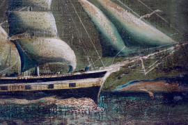 Veliero, olio su tela, cm 25x35, fine XIX secolo, (difetti).