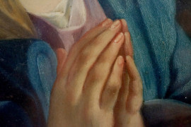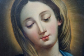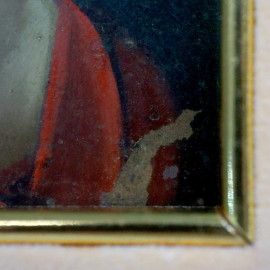 Vergine in preghiera, olio su rame, cm 24x18,5, XIX secolo, entro cornice, (cadute di colore).