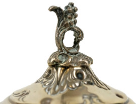 Zuccheriera in argento sbalzato e cesellato con doppia presa laterale, cm 15x13, prima metà XX secolo, peso gr.180, (segni del tempo).