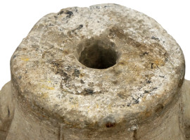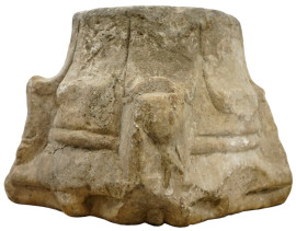 Antico capitello in marmo, scolpito con decorazione fitomorfa, cm 31x35x37 circa, (difetti).