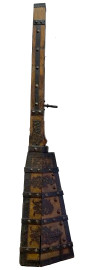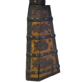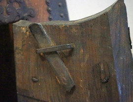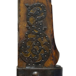 Antico giogo in legno con guarnizioni in ferro battuto, cm h 225, (difetti).