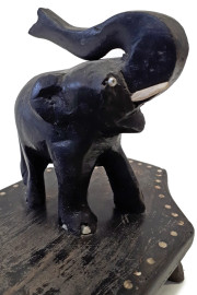 Arte coloniale dell’Africa centrale, Centrotavola con coppia di elefanti in ebano con intarsi in avorio, cm 13x33x11, prima metà del XX sec.