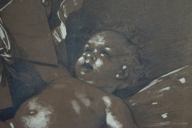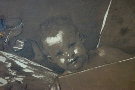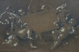 Artista del XIX secolo, Gioco di putti, biacca e carboncino su carta riportata su tela, cm 112x179, entro cornice, (difetti e macchie).
