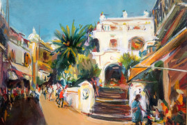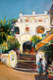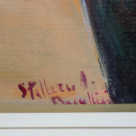 Mercato, olio su cartone, cm 29x41, entro cornice.