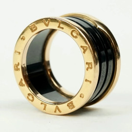 Bulgari - Collezione B.Zero1, anello con fascia a spirale in ceramica nera e oro rosa