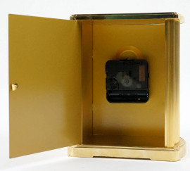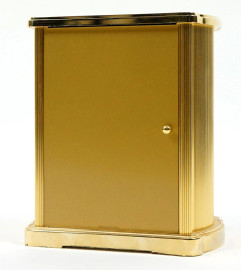 Bulova, orologio da tavolo al quarzo, quadrante a numeri romani, XX secolo, in metallo dorato, cm h 17x14,5x9, (meccanismo da revisionare).