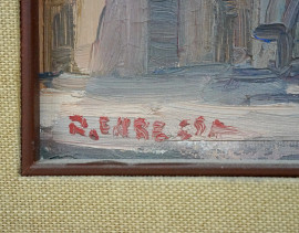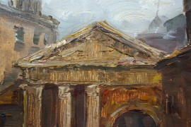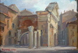 Portico di Ottavia, due dipinti ad olio su cartone telato, misure max cm 20x25, entro cornici.