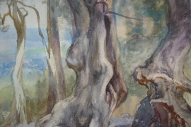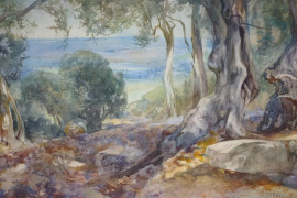 Tivoli, acquarello su cartone, cm 49x67, entro cornice.