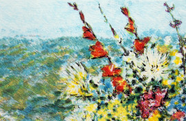 Vaso con fiori, litografia a colori, cm 63x86, ES.96/200, entro cornice.