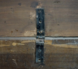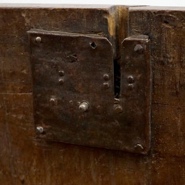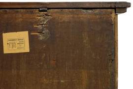 Cassapanca in noce, XVIII secolo, cm h 55x160x60, (difetti e parti sostituite).